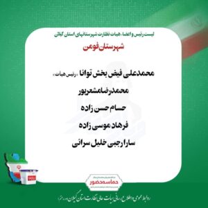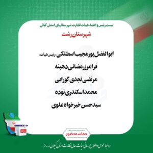 بر اساس حکم هیئت مرکزی انتخابات شوراهای اسلامی کشور، اعضای هیأت نظارت شهرستانهای استان گیلان برای انتخابات شورای هفتم مشخص شدند.